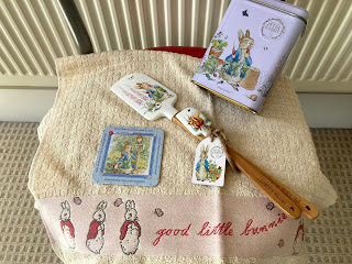 食器棚にはピーターラビットの食器やマグが。初期のデザインでしょうね。ヴィンテージ感出してます。